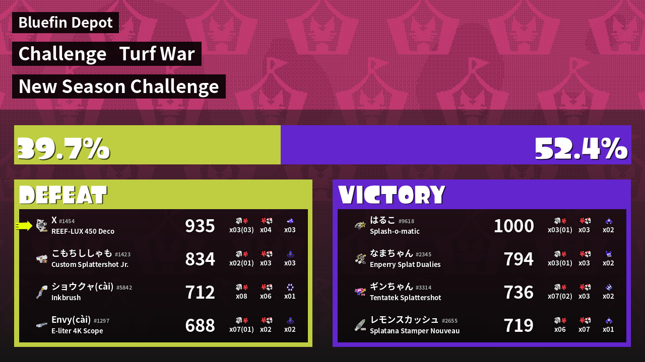 | Mode | Turf War - Challenge | ||