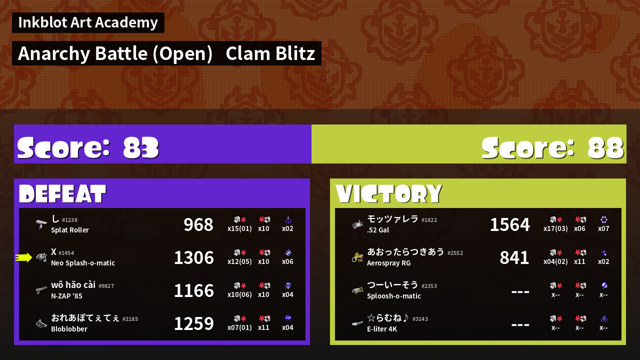 | Mode | Clam Blitz - Anarchy Battle (Open) | ||
