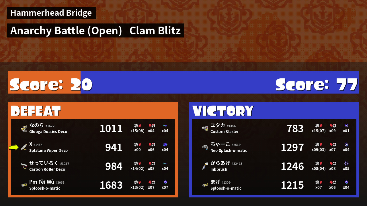 | Mode | Clam Blitz - Anarchy Battle (Open) | ||