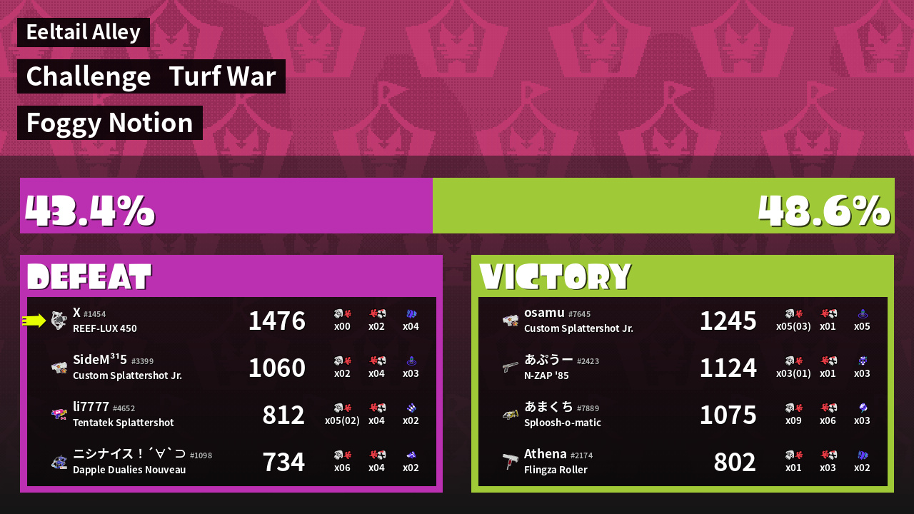 | Medals | #1 Turf Inker #1 Enemy-Base Inker #1 Super Jump Spot | ||