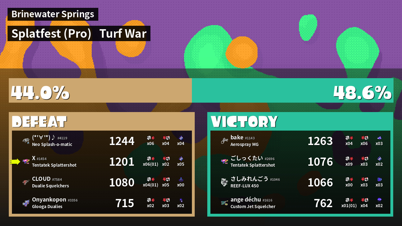 | Mode | Turf War - Splatfest (Pro) | ||