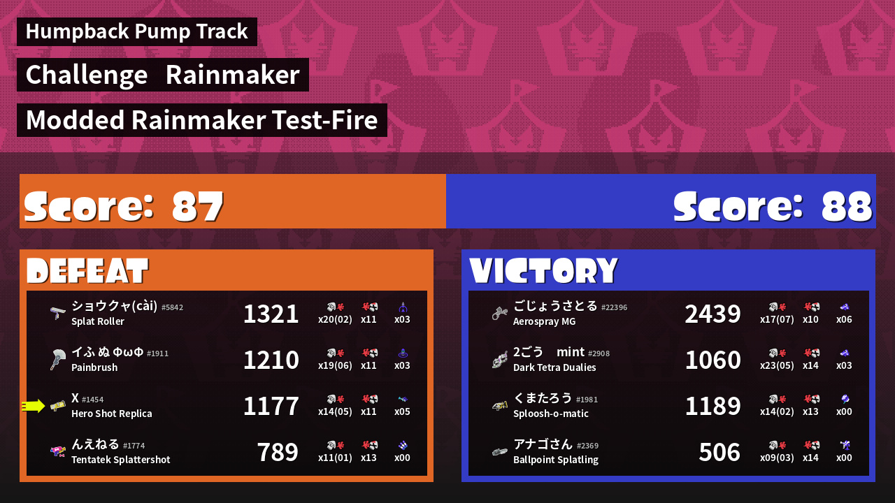 | Medals | #1 Trizooka User #2 Popular Target #2 Splat Assister | ||