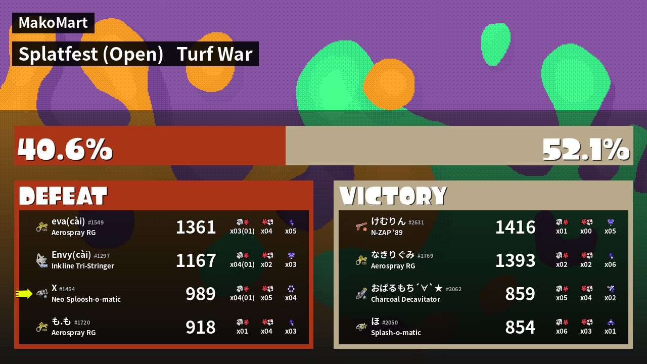 | Medals | #1 Overall Splatter #1 Enemy-Base Inker #1 Enemy Splatter | ||
