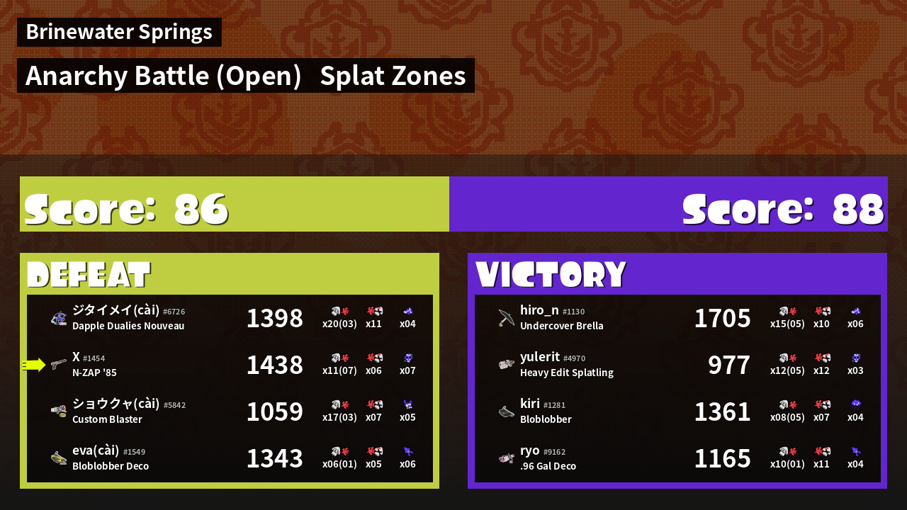 | Mode | Splat Zones - Anarchy Battle (Open) | ||