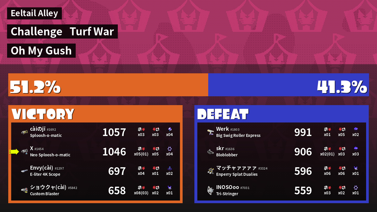 | Medals | #1 Super Jump Spot #1 Killer Wail 5.1 User #2 Overall Splatter | ||