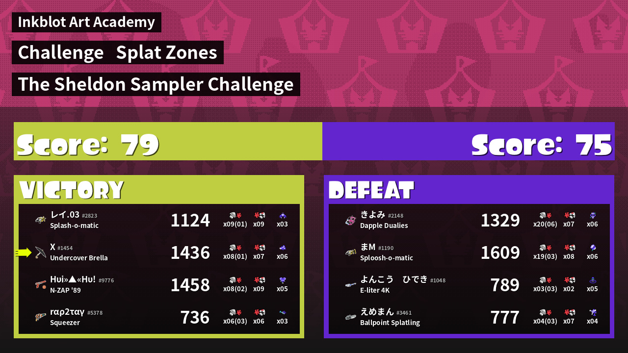 | Medals | #1 Splat Zone Inker #1 Popular Target #1 Splat Zone Hero | ||