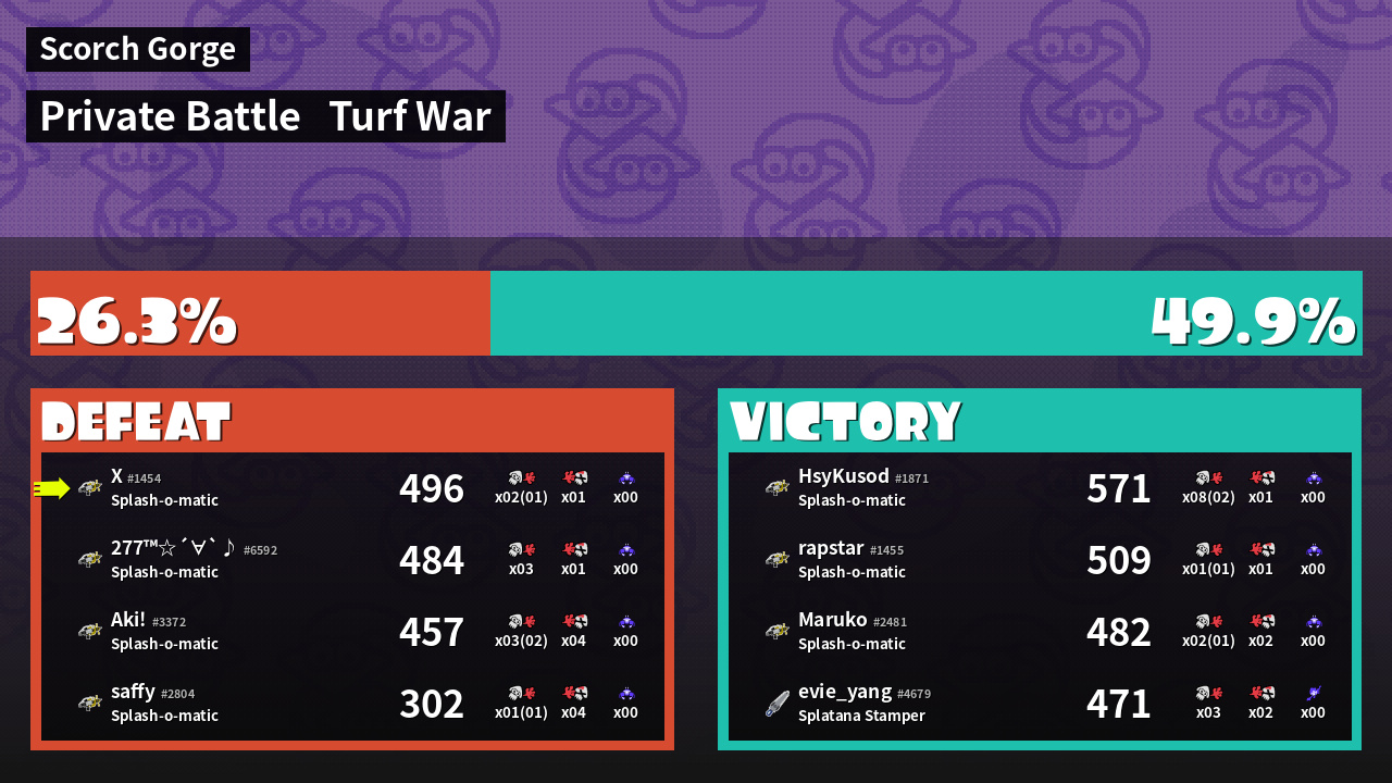 | Mode | Turf War - Private Battle | ||