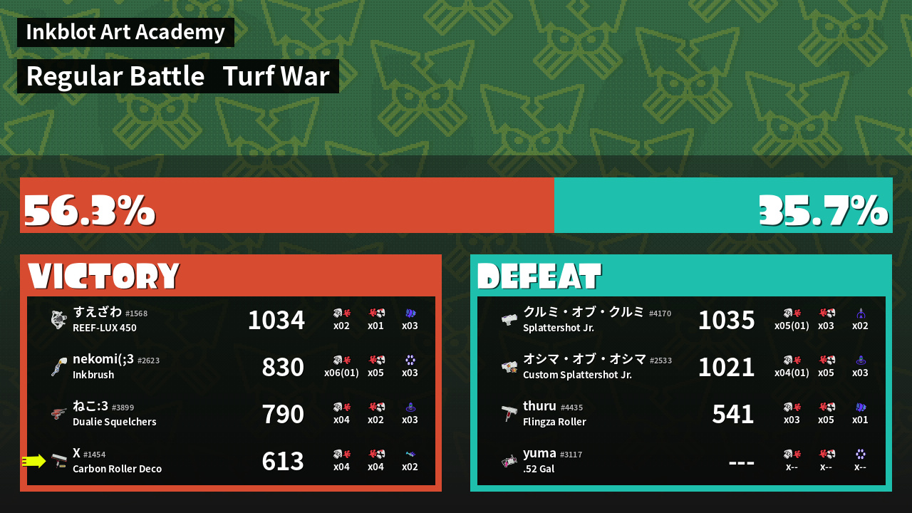 | Medals | #1 Damage Taker #2 Overall Splatter #2 Enemy-Base Inker | ||
