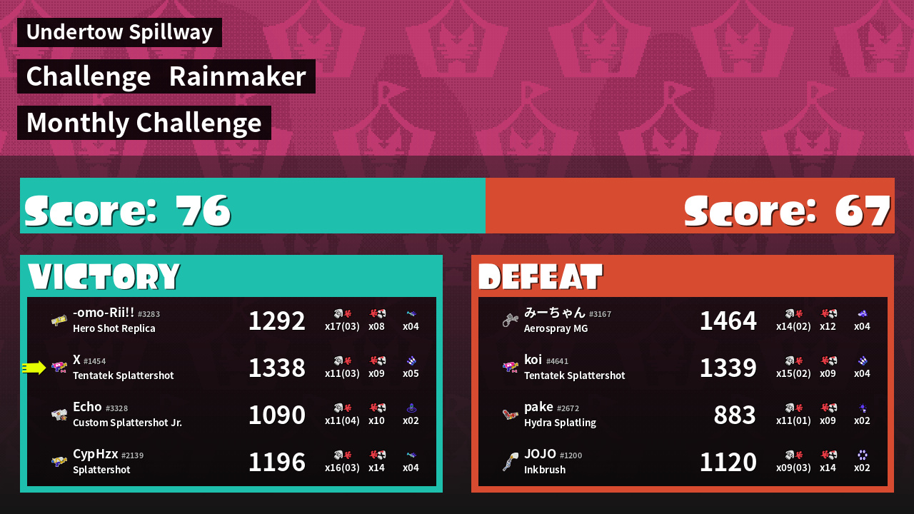 | Weapon | Tentatek Splattershot ( Splat Bomb / Triple Inkstrike) | ||