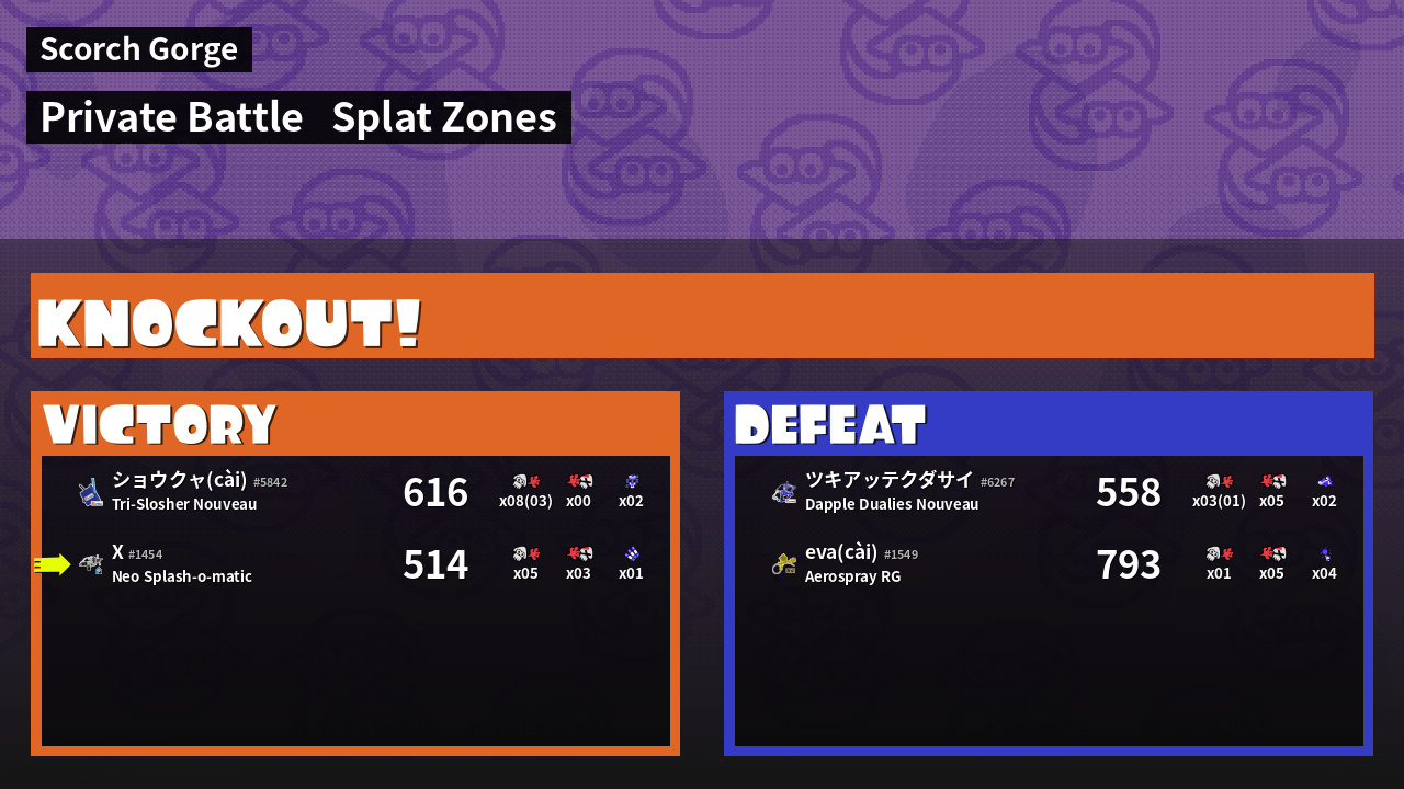 | Mode | Splat Zones - Private Battle | ||