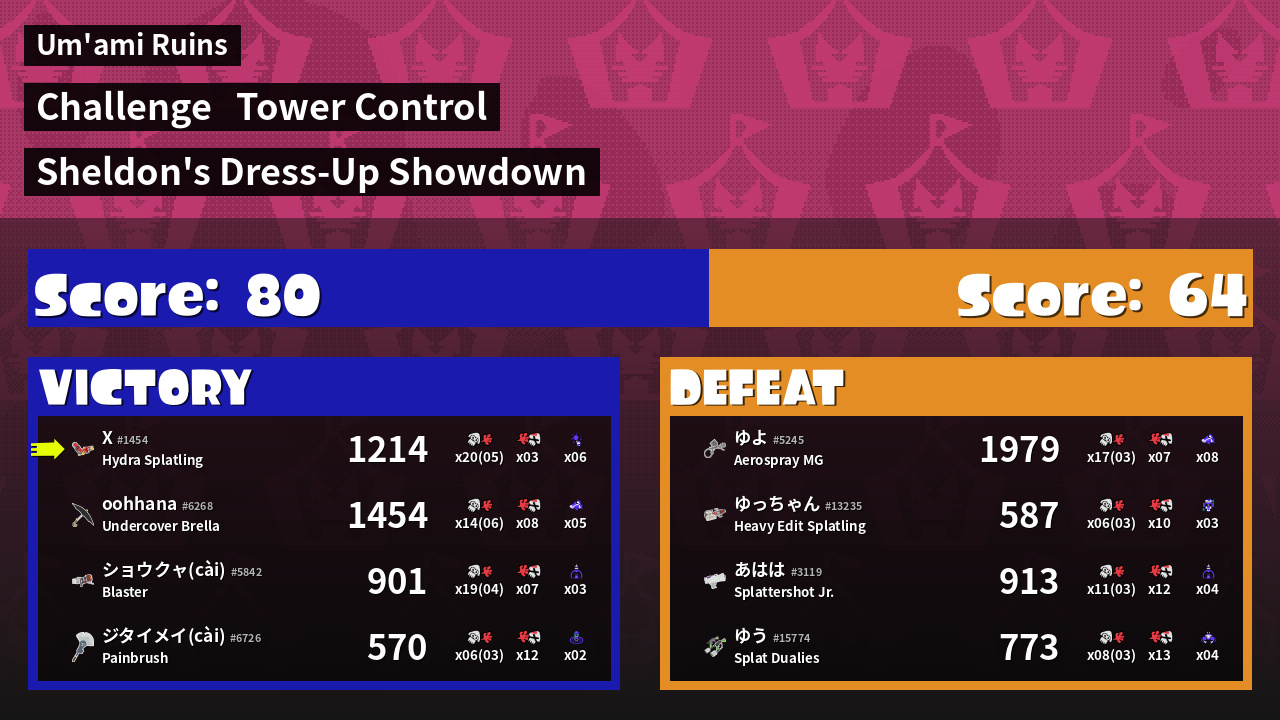 | Medals | #1 Overall Splatter Record-Score Setter #1 Popular Target | ||