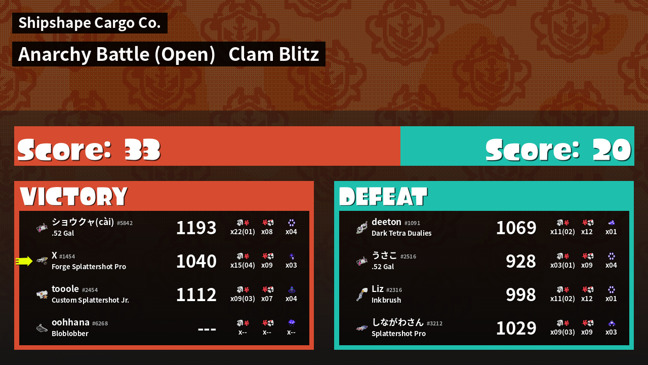 | Mode | Clam Blitz - Anarchy Battle (Open) | ||