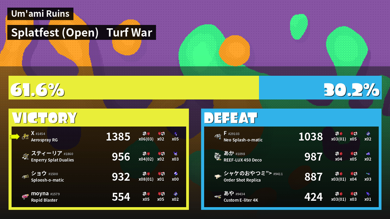 | Medals | #1 Turf Inker #1 Enemy-Base Inker #1 Splat Assister | ||