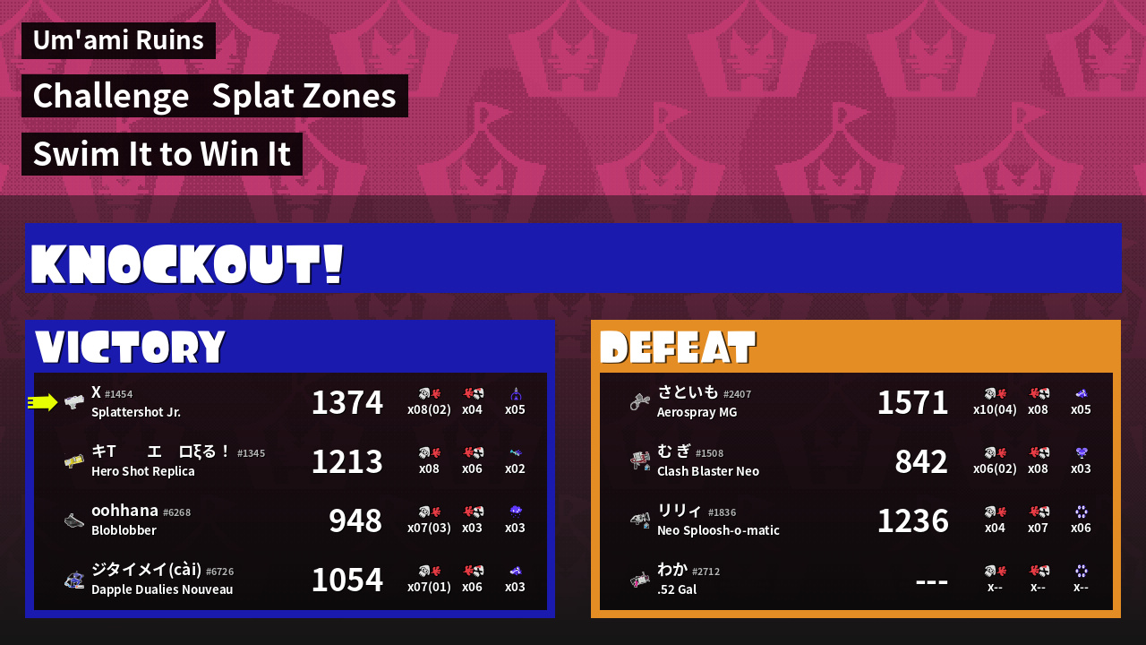 | Medals | #1 Overall Splatter #1 Splat Zone Inker #1 Turf Inker | ||