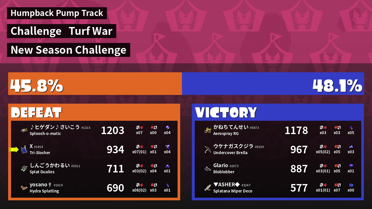 | Medals | #1 Enemy-Base Inker #1 Damage Taker #1 Inkjet User | ||