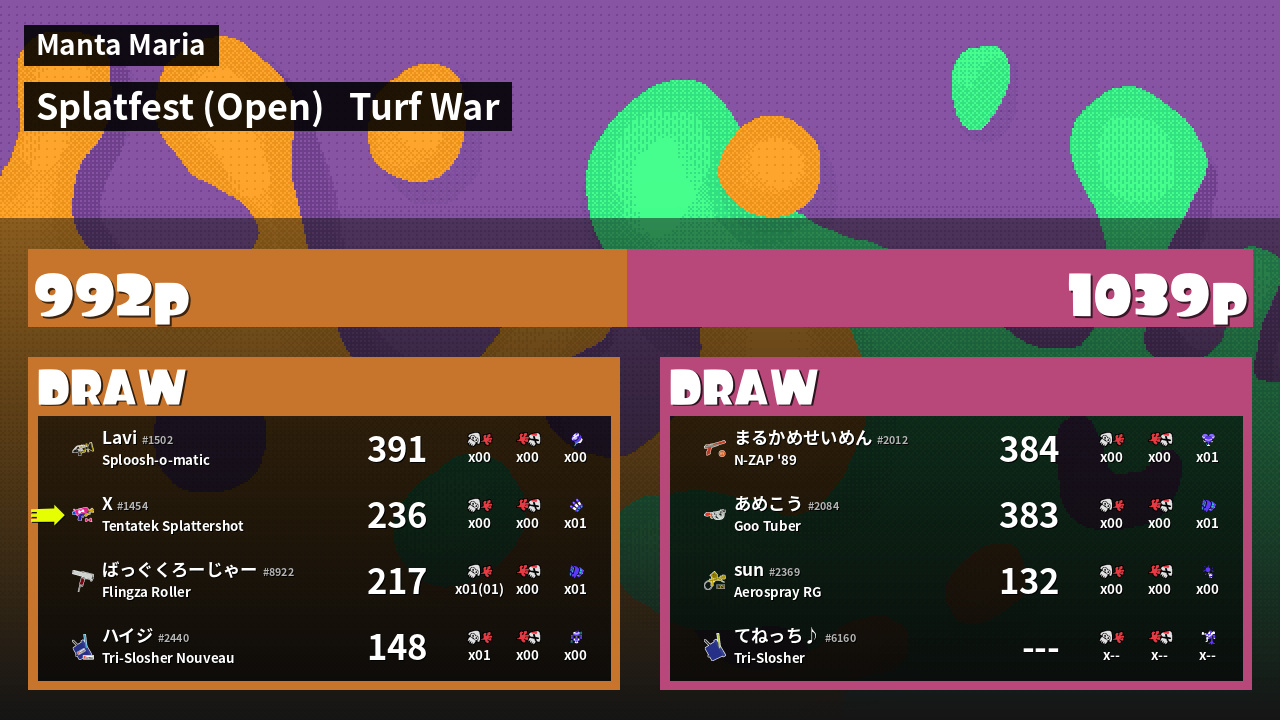| Weapon | Tentatek Splattershot ( Splat Bomb / Triple Inkstrike) | ||
