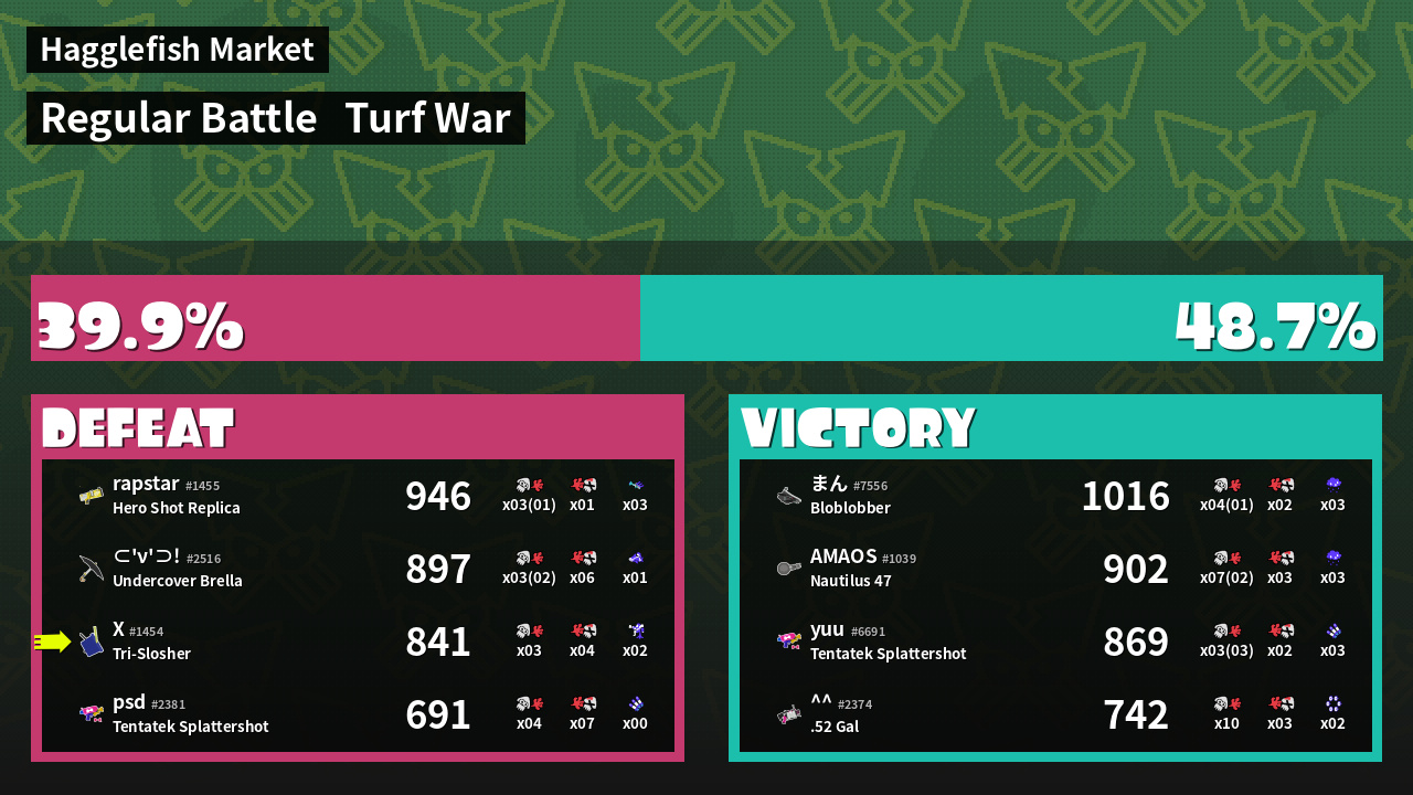 | Medals | #1 Popular Target #1 Enemy-Base Inker #1 Ground Traveler | ||