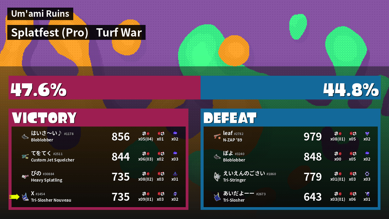 | Mode | Turf War - Splatfest (Pro) | ||