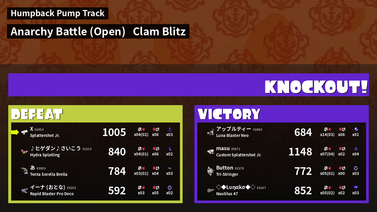 | Mode | Clam Blitz - Anarchy Battle (Open) | ||