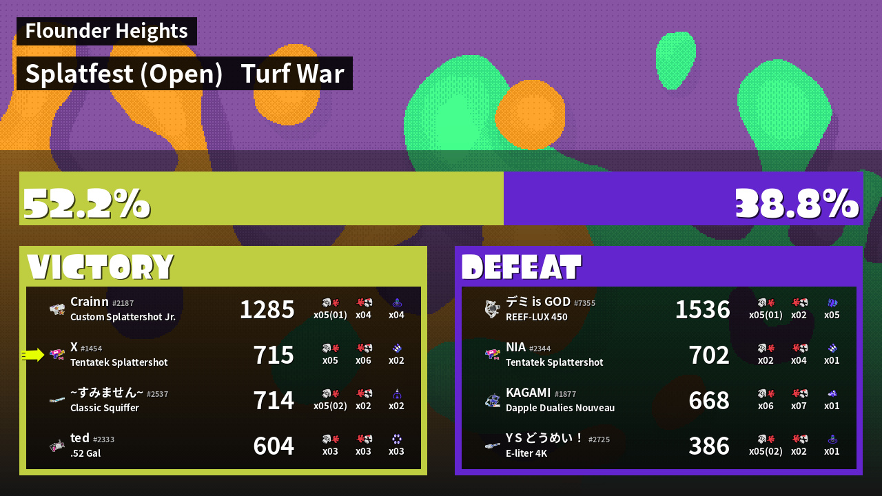 | Medals | #1 Overall Splatter #1 Enemy Splatter #1 Base Defender | ||