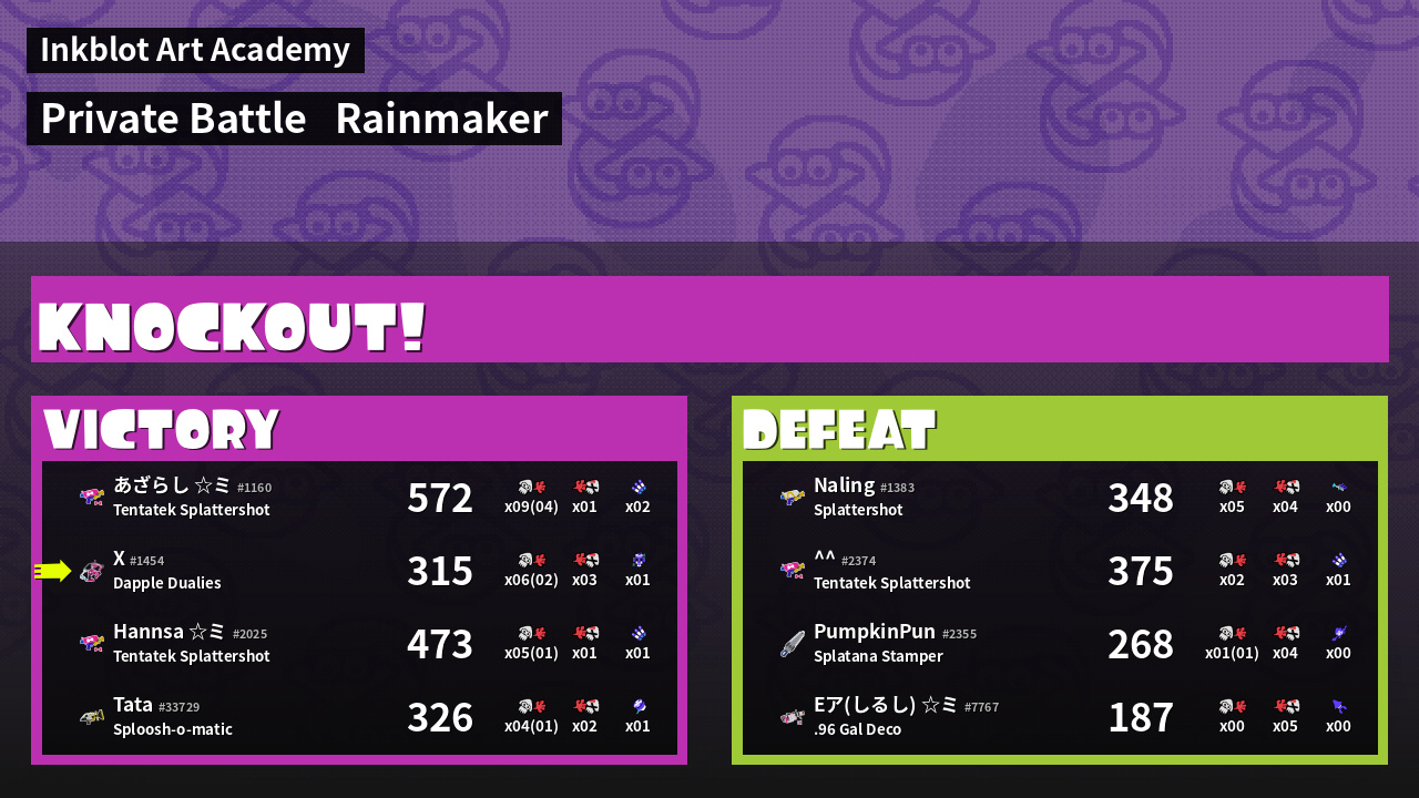 | Medals | #1 Tacticooler User #2 Overall Splatter #2 Enemy Splatter | ||