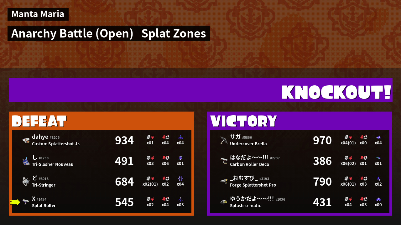 | Mode | Splat Zones - Anarchy Battle (Open) | ||