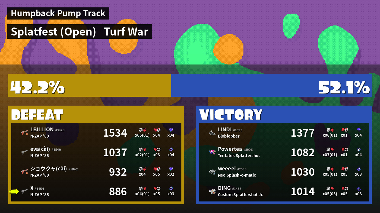 | Medals | #1 Popular Target #1 Splat Assister #1 Base Defender | ||