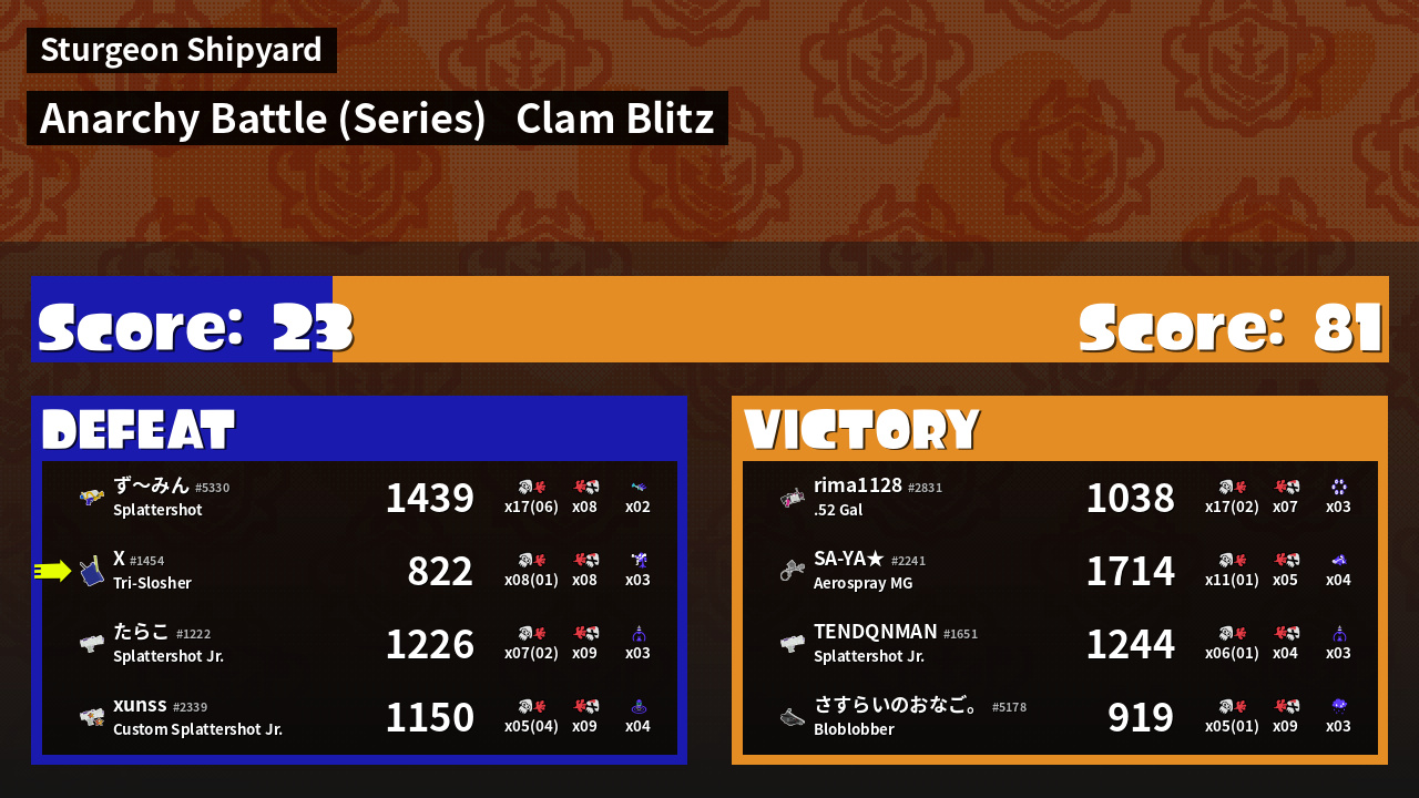 | Mode | Clam Blitz - Anarchy Battle (Series) | ||