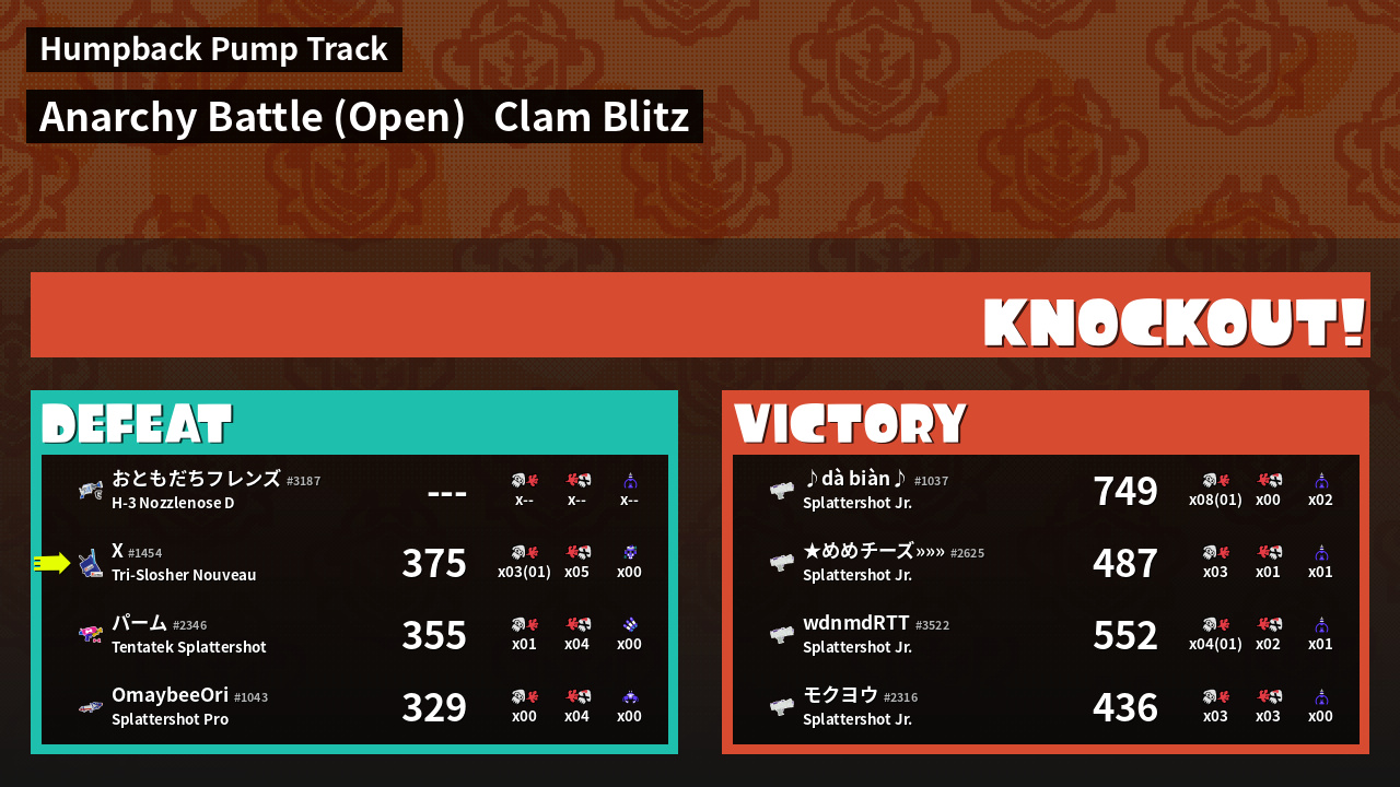 | Mode | Clam Blitz - Anarchy Battle (Open) | ||