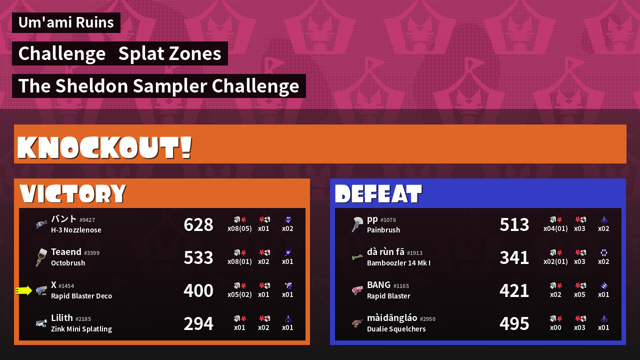 | Challenge | The Sheldon Sampler Challenge Make the most of random weapons! | ||