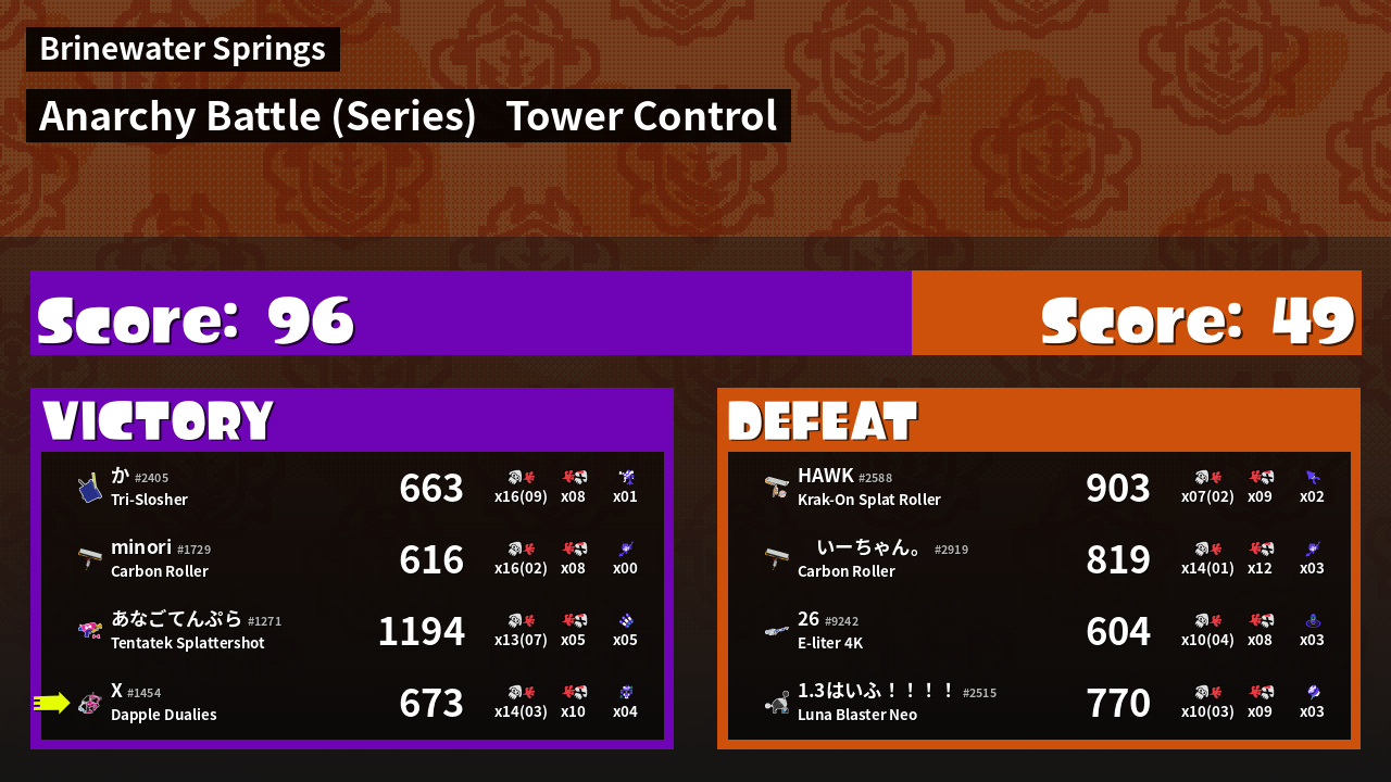 | Medals | #1 Tower Stopper First Splat! #1 Tacticooler User | ||