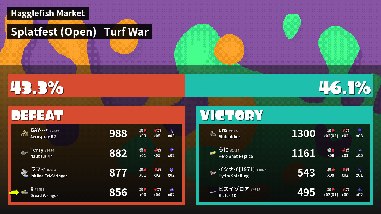 | Medals | #1 Popular Target #1 Damage Taker #1 Ink Consumer | ||