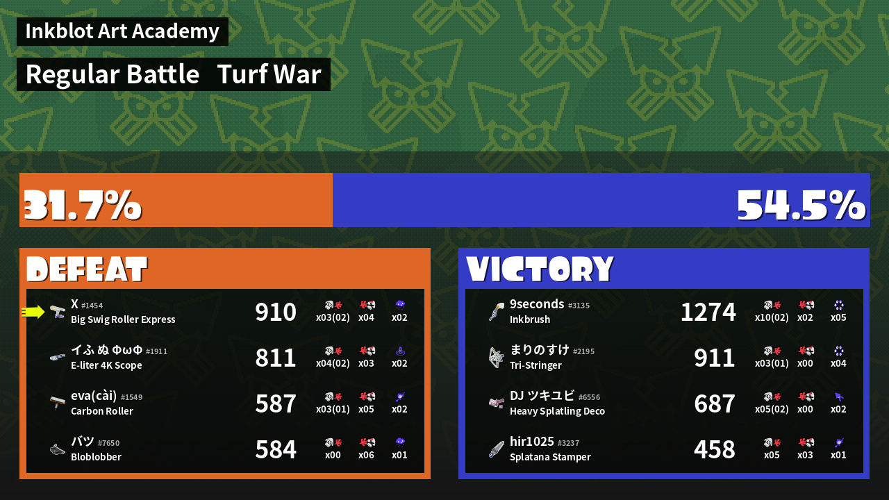 | Weapon | Big Swig Roller Express ( Angle Shooter / Ink Storm) | ||