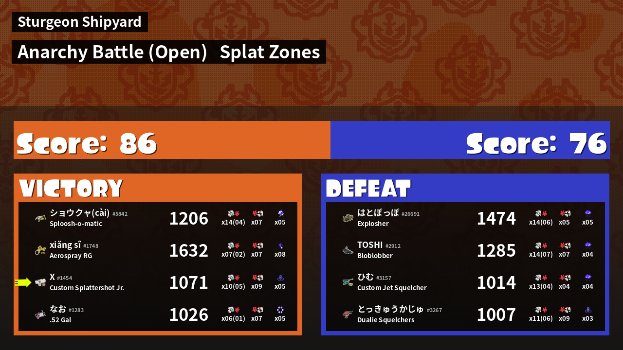 | Mode | Splat Zones - Anarchy Battle (Open) | ||