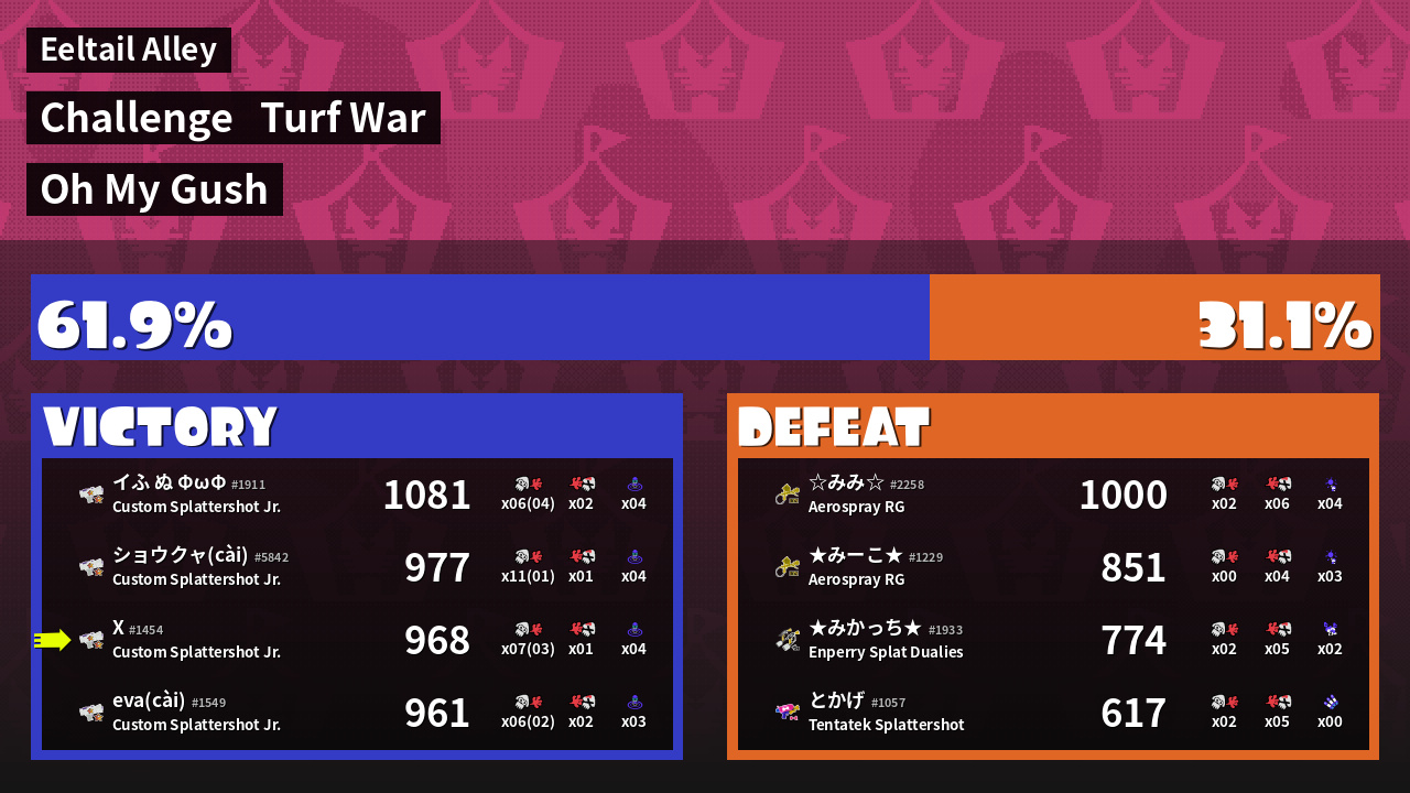 | Medals | #1 Popular Target #1 Damage Taker #1 Ink Consumer | ||