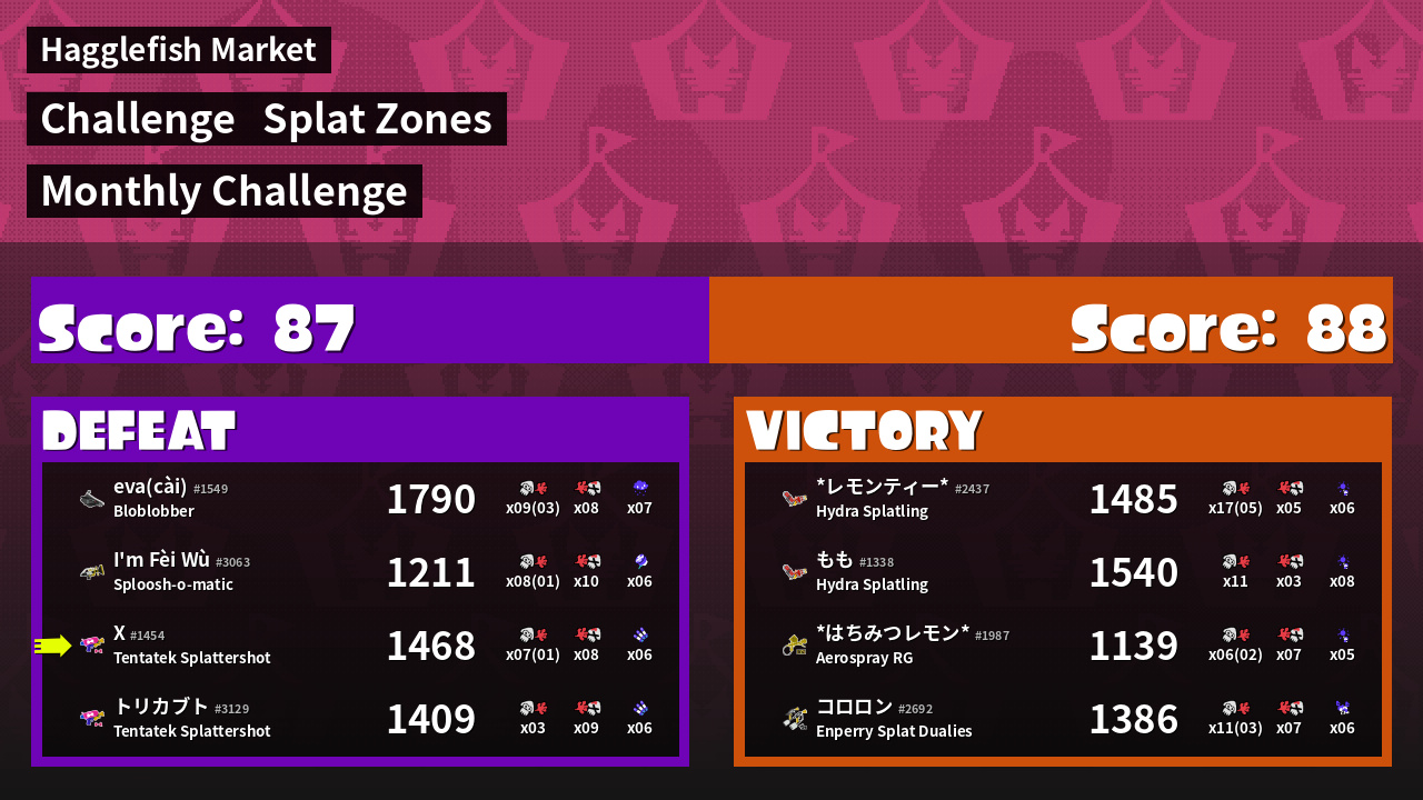 | Weapon | Tentatek Splattershot ( Splat Bomb / Triple Inkstrike) | ||