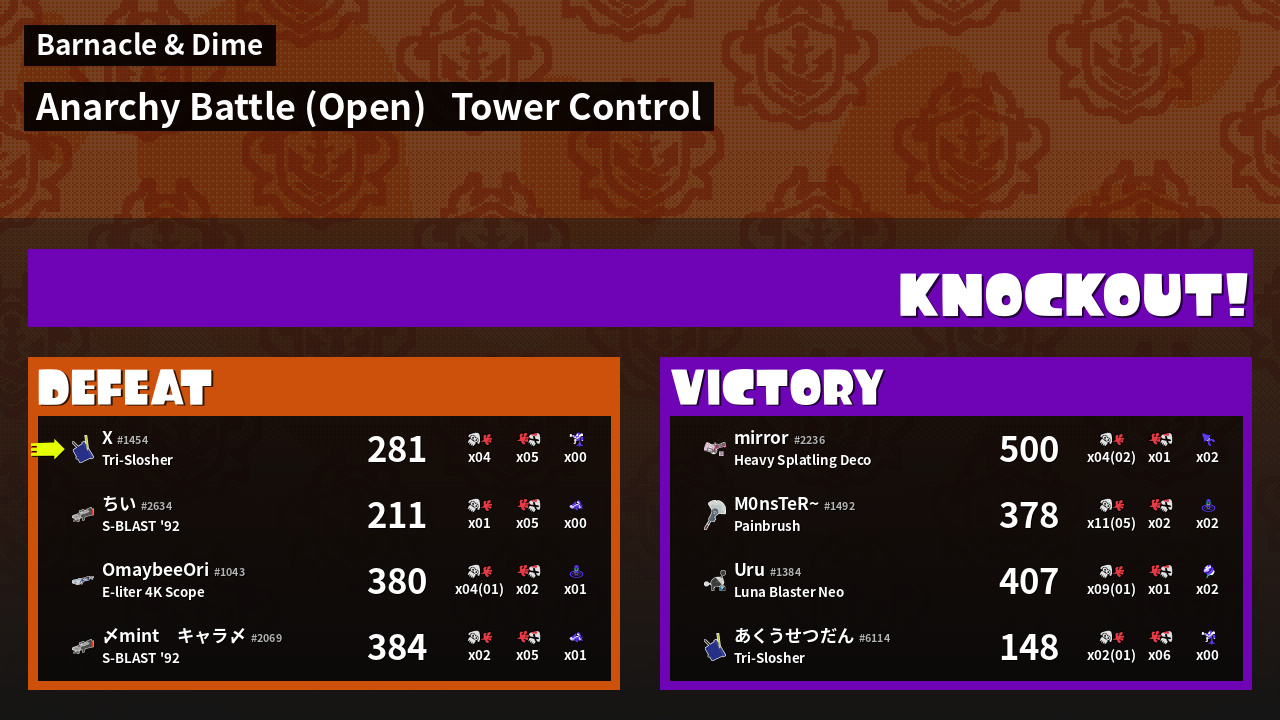 | Mode | Tower Control - Anarchy Battle (Open) | ||