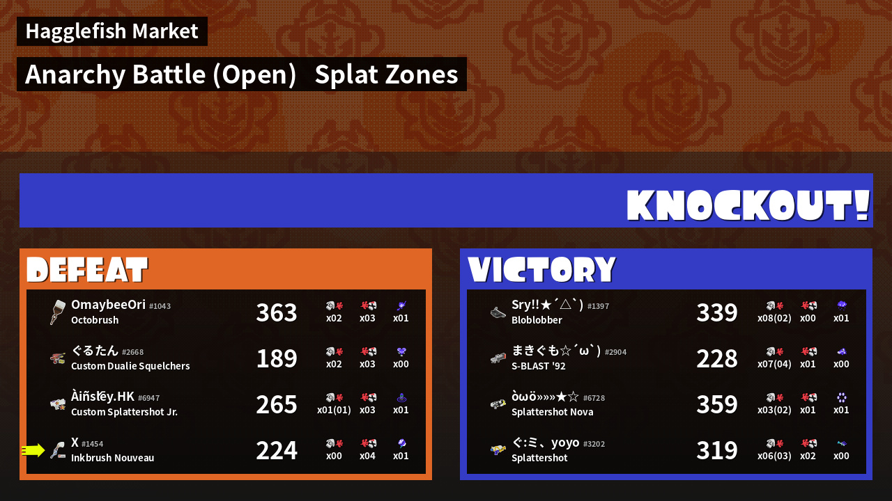| Mode | Splat Zones - Anarchy Battle (Open) | ||