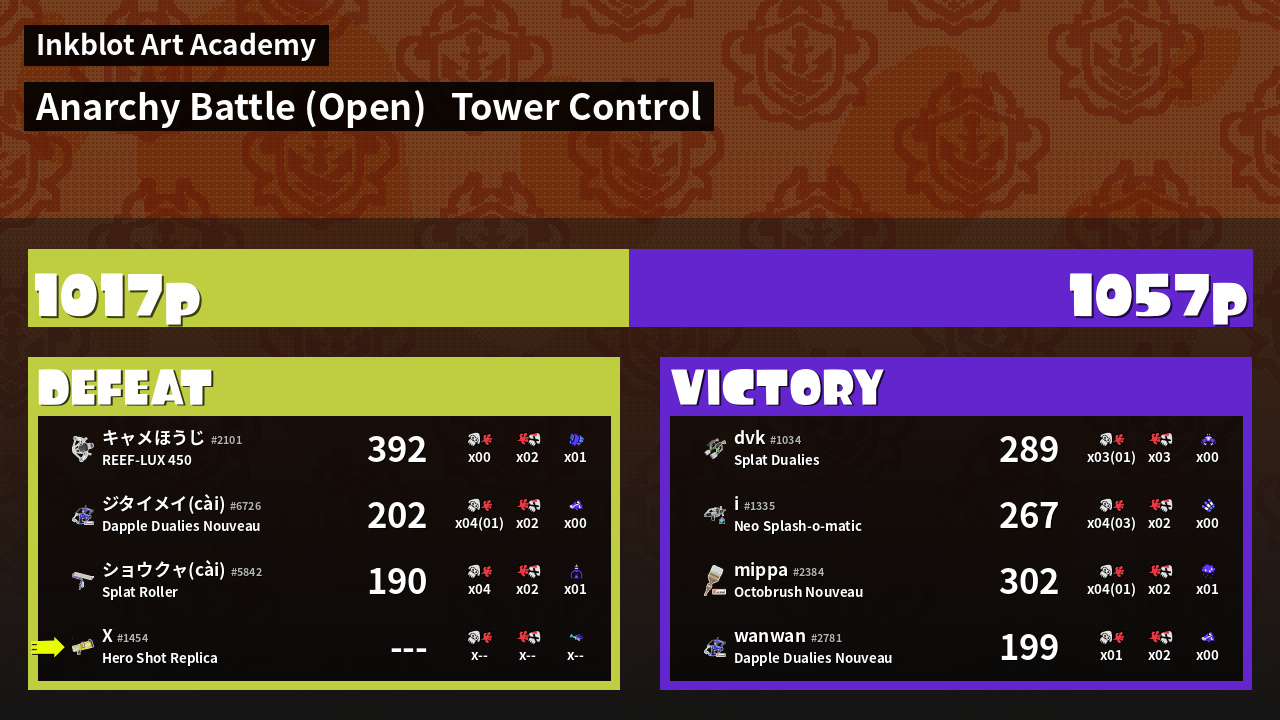 | Mode | Tower Control - Anarchy Battle (Open) | ||