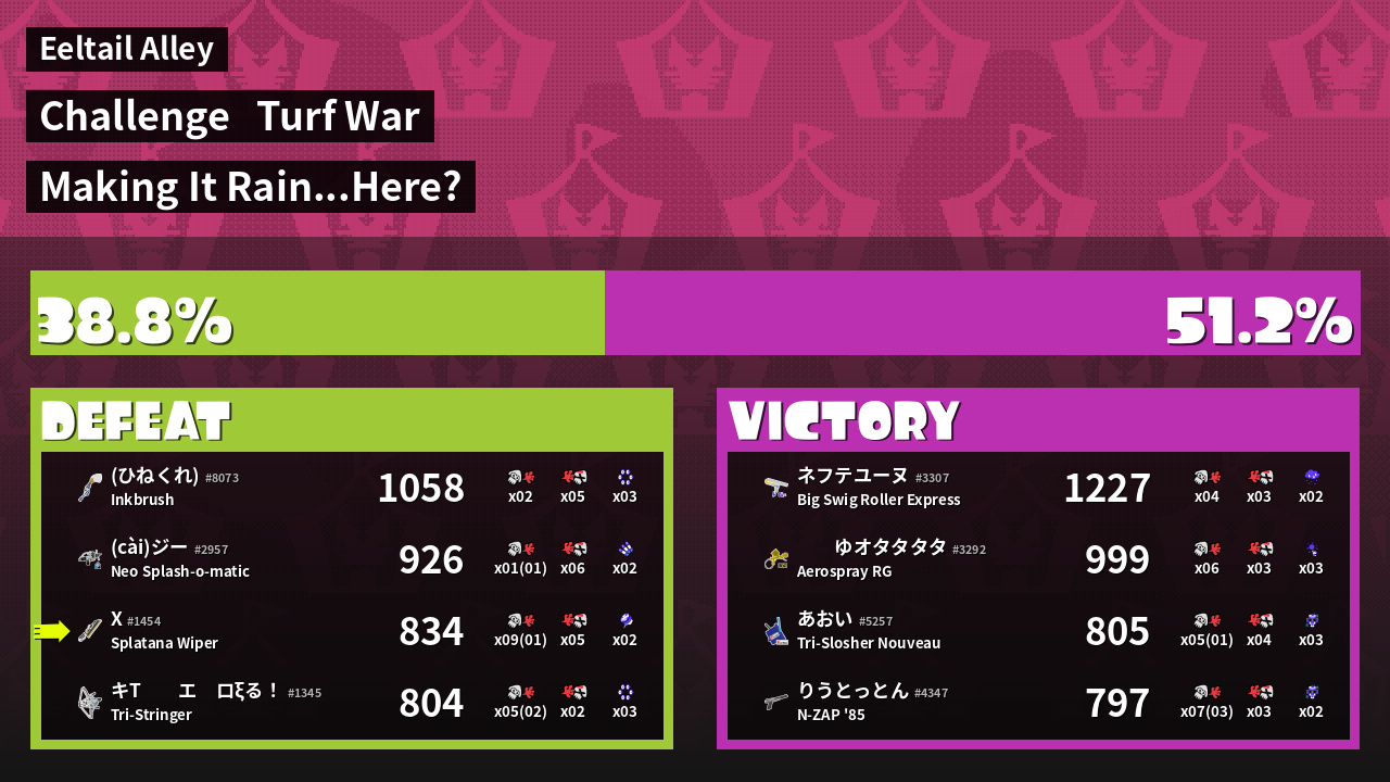 | Medals | #1 Overall Splatter #1 Popular Target #1 Enemy Splatter | ||