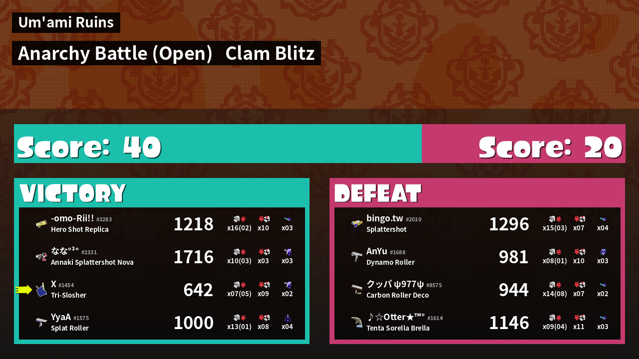 | Mode | Clam Blitz - Anarchy Battle (Open) | ||