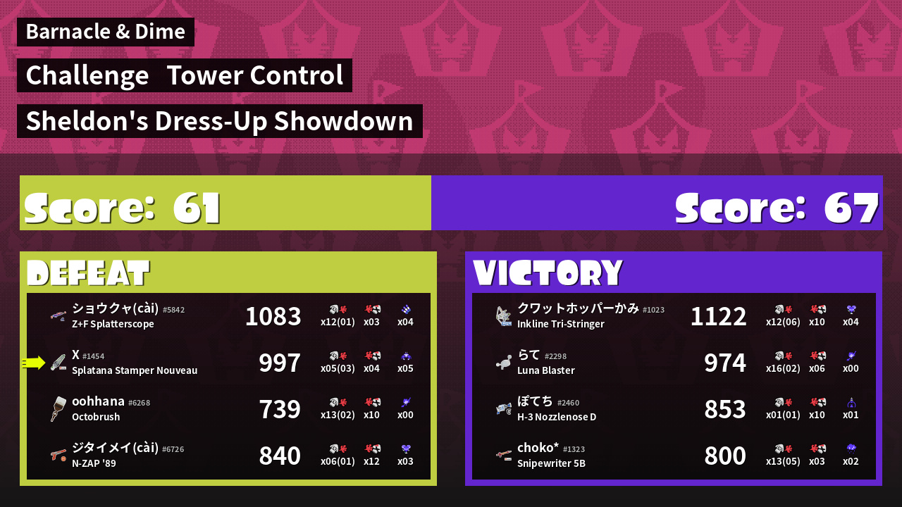 | Weapon | Splatana Stamper Nouveau ( Toxic Mist / Crab Tank) | ||