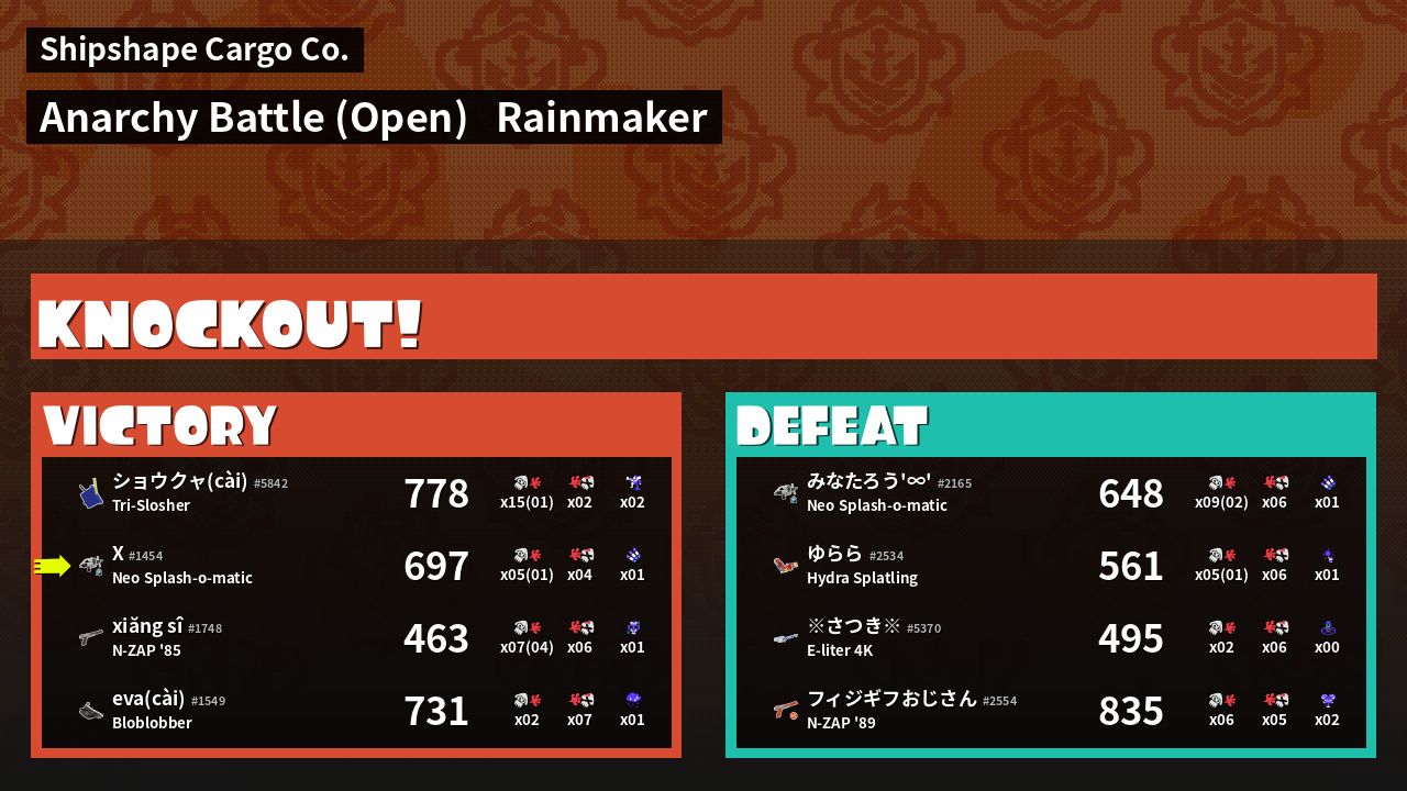 | Mode | Rainmaker - Anarchy Battle (Open) | ||