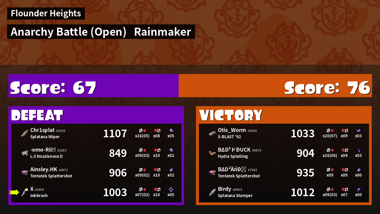 | Mode | Rainmaker - Anarchy Battle (Open) | ||