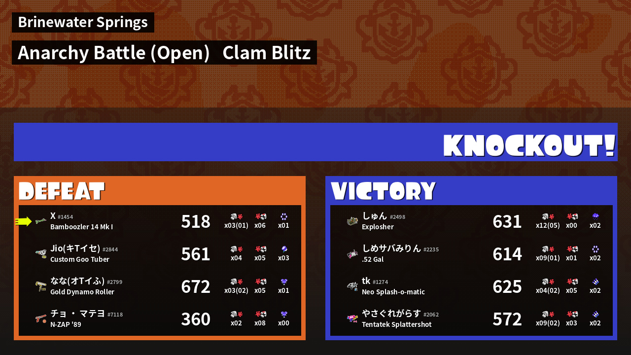 | Mode | Clam Blitz - Anarchy Battle (Open) | ||