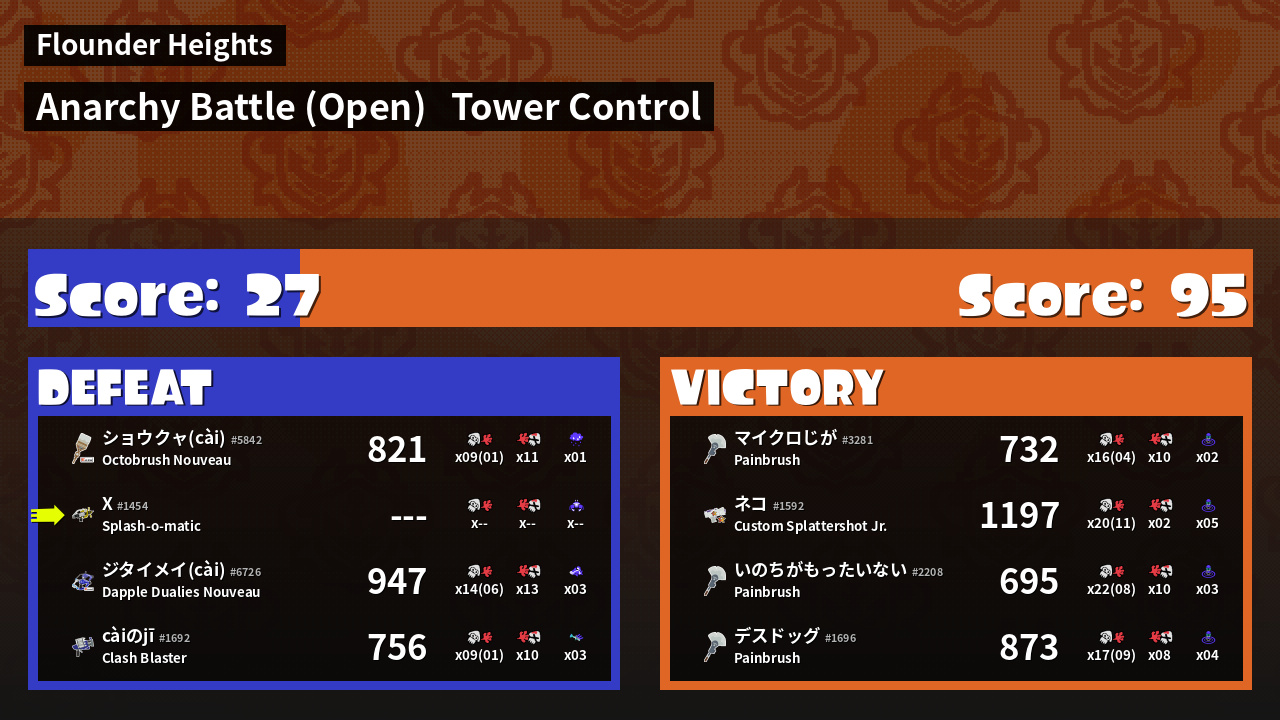 | Mode | Tower Control - Anarchy Battle (Open) | ||