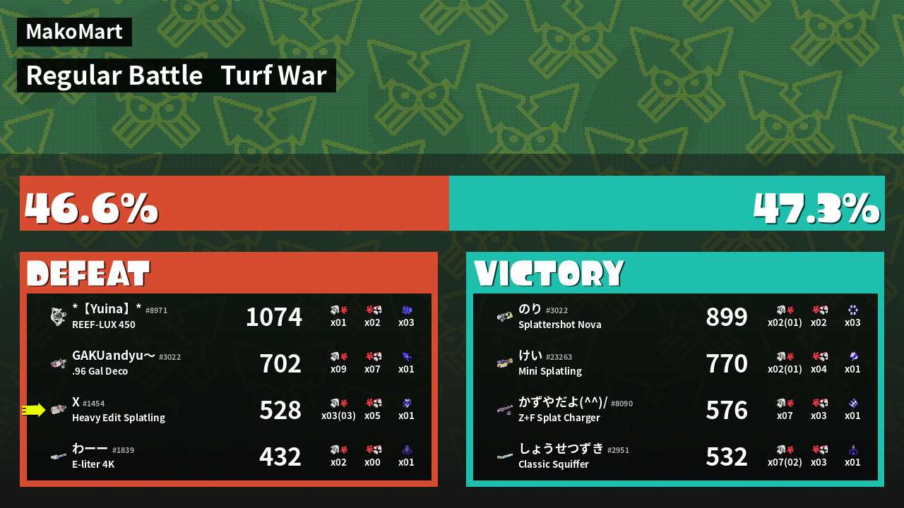 | Mode | Turf War - Regular Battle | ||