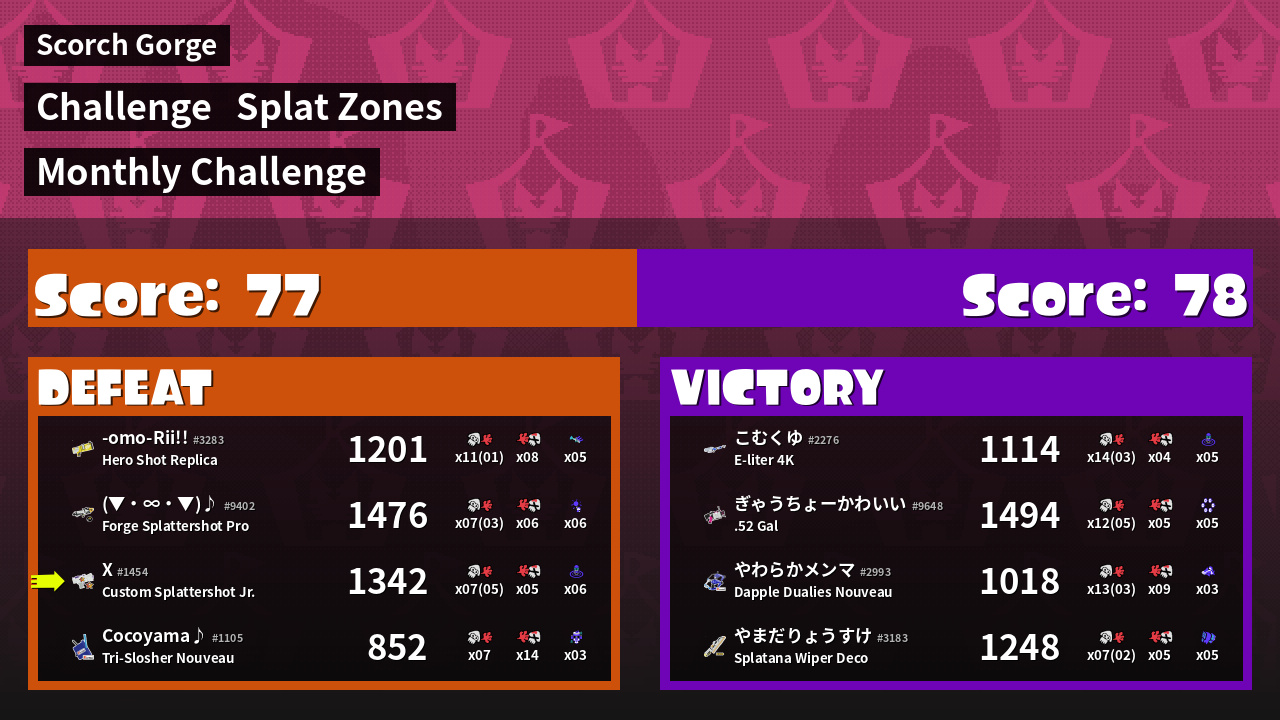 | Medals | #1 Splat Assister #1 Splat Zone Hero #1 Damage Taker | ||