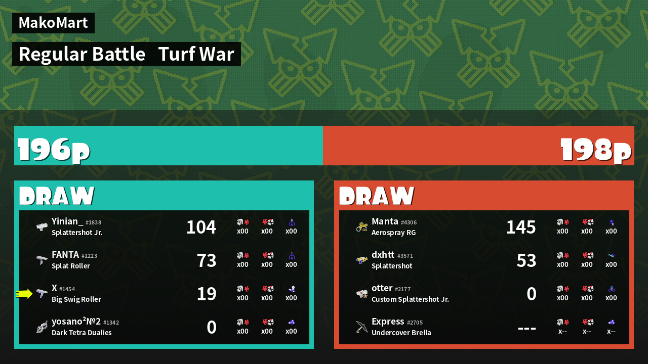 | Weapon | Big Swig Roller ( Splash Wall / Ink Vac) | ||