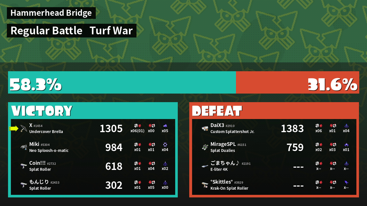 | Medals | #1 Overall Splatter #1 Turf Inker #1 Enemy-Base Inker | ||